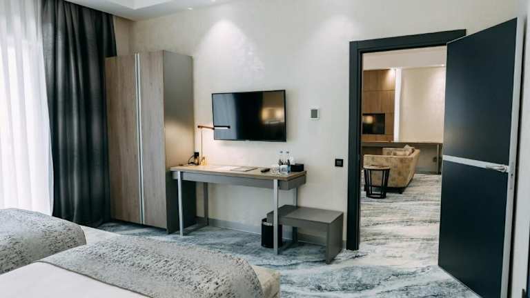 In der Unterkunft Rixos Turkistan sind alle Zimmer mit einem Schreibtisch und einem TV ausgestattet. Einige Zimmer verfügen über eine Küchenzeile mit Kühlschrank, Mikrowelle und Minibar. Die Ausstattungen umfassen auch Bettwäsche und Handtücher.