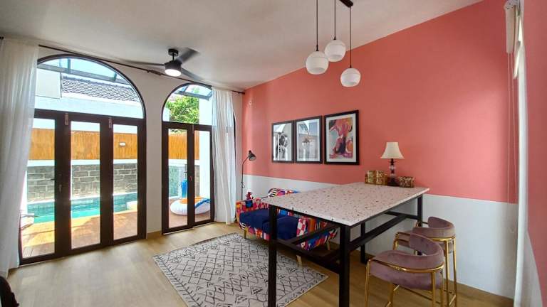 Roemah Renjana Rosie Makassar ist eine Unterkunft, die mit einem Außenpool sowie einer Gemeinschaftslounge ausgestattet ist. Außerdem stehen eine Terrasse und ein kostenloser Parkplatz zur Verfügung. Das Ferienhaus bietet Gästen Übernachtungsmöglichkeiten mit kostenlosem WLAN und Blick auf den Pool.