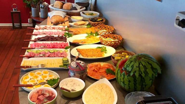 Im Röst Bryggehotell wird ein kontinentales Frühstück angeboten. Eine Snackbar und ein Café stehen ebenfalls zur Verfügung, die auch Kindermahlzeiten anbieten.