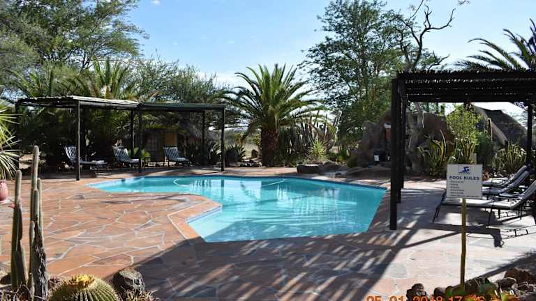 Die Roidina Safari Lodge in Omaruru ist eine ideale Unterkunft für alle, die die Natur und Tierwelt Namibias erleben möchten. Hier können Sie in einer entspannten Atmosphäre verweilen und den Komfort einer Lodge genießen. WLAN steht Ihnen kostenfrei zur Verfügung und die Unterkunft bietet zudem einen schönen Garten und eine Terrasse. Parkplätze sind ebenfalls kostenfrei verfügbar.
