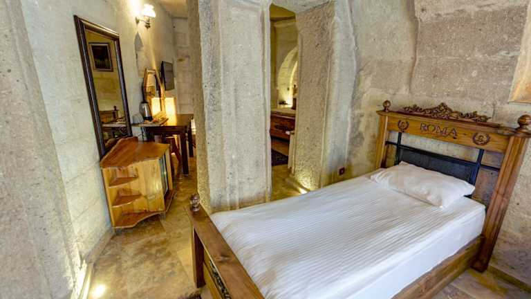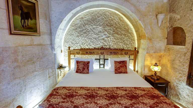 Die Zimmer im Roma Cave Suite sind traditionell im Höhlenstil gestaltet und verfügen über polierte Holzböden und Steingewölbedecken. Jedes Zimmer bietet ein eigenes Badezimmer mit moderner Ausstattung. Einige Zimmer verfügen auch über eine eigene Whirlpool-Badewanne oder eine Sauna.