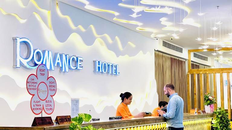 Das Romance Hotel liegt im Stadtzentrum von Huế, nur wenige Schritte vom Parfümfluss, der Trang-Tien-Brücke und vielen anderen beliebten Zielen entfernt. Es bietet eine ideale Lage für Touristen, um die Schönheit der Stadt Huế zu erkunden, die für ihre UNESCO-Weltkulturerbestätten bekannt ist. Der Bahnhof von Huế ist nur 2 km entfernt und der internationale Flughafen Phu Bai erreichen Sie nach 15 km. Der Strand Thuan An ist 12 km entfernt und die heiße Quelle My An liegt 5 km östlich des Hotels.