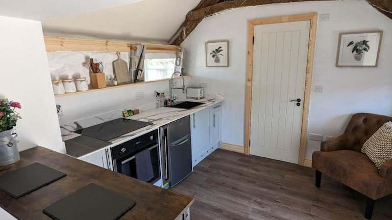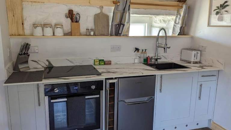 Die Unterkunft verfügt über eine voll ausgestattete Küche, in der eigene Mahlzeiten zubereitet werden können. Lebensmittellieferung ist gegen Aufpreis möglich.