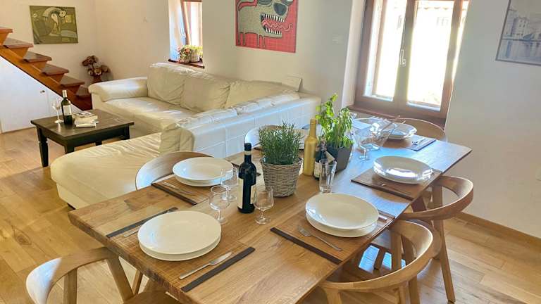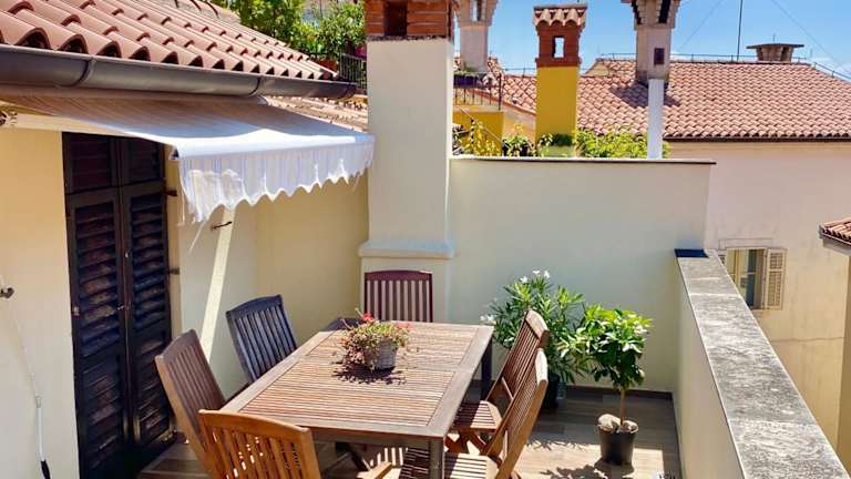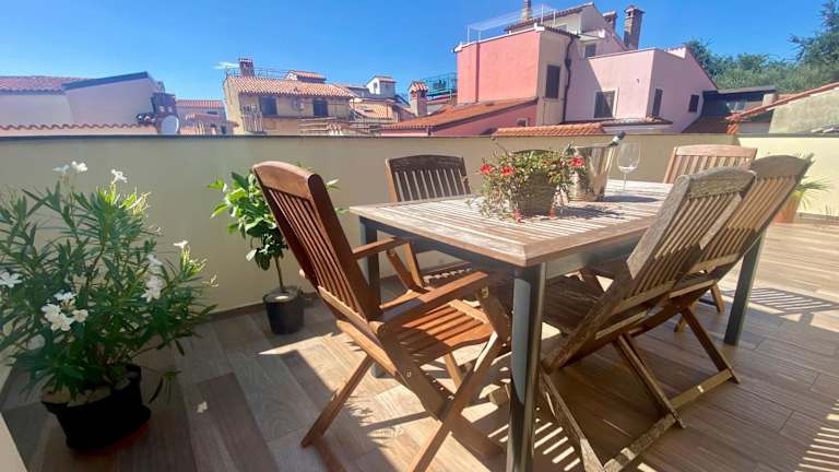Die Romantic maisonette bietet Übernachtungsmöglichkeiten mit Stadtblick und einem Balkon. Die Unterkunft besticht durch eine Terrasse und liegt nur etwa 100 Meter vom Strand Punta Piran entfernt.
