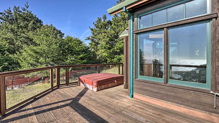 Genießen Sie Entspannung pur im Whirlpool des Ferienhauses. Nutzen Sie auch die Gelegenheit, die umliegende Natur zu erkunden und die Sehenswürdigkeiten der Region zu besuchen. Das Romantic Ridgetop Escape with Hot Tub Near Mendocino bietet Ihnen die ideale Basis für Outdoor-Aktivitäten und kulturelle Erlebnisse.