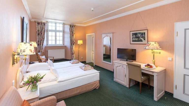 Im Schlosshotel als Fahrradfahrer ist es etwas suboptimal. Man kann die Fahrräder zwar im einem Schuppen abgeschlossen unterbringen, jedoch liegt der Schuppen ca. 300 m vom Hotel entfernt außerhalb des Geländes. Lademöglichkeiten gibt es dort keine. Ansonsten, neben den erwähnten Abstrichen beim Zimmer, tolles und sehr gediegenes Ambiente. Toll: Als wir nebenbei erwähnten, dass wir Hochzeitstag haben, hat der Chef uns spontan eine Dalsche Wein spendiert.