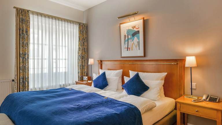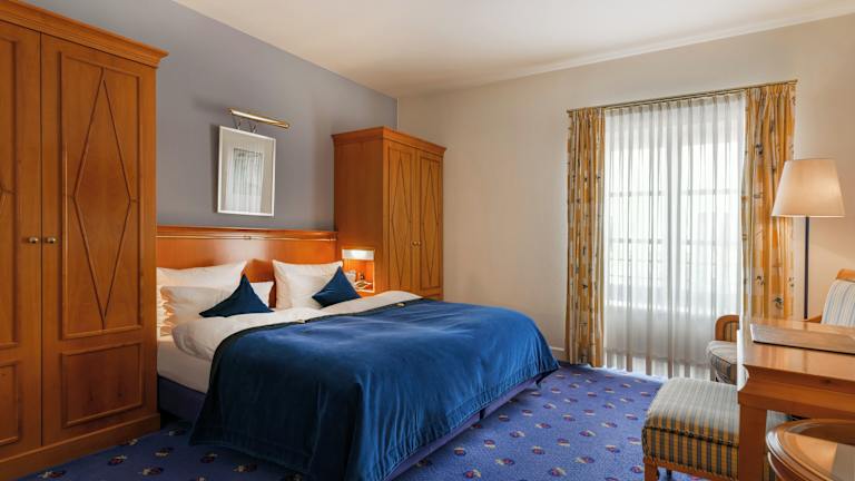 Das Hotel bietet traditionell eingerichtete Zimmer mit einer besonderen Eleganz und einem hohen Komfort. Jedes Zimmer ist individuell gestaltet und bietet eine gemütliche Atmosphäre für einen erholsamen Aufenthalt.