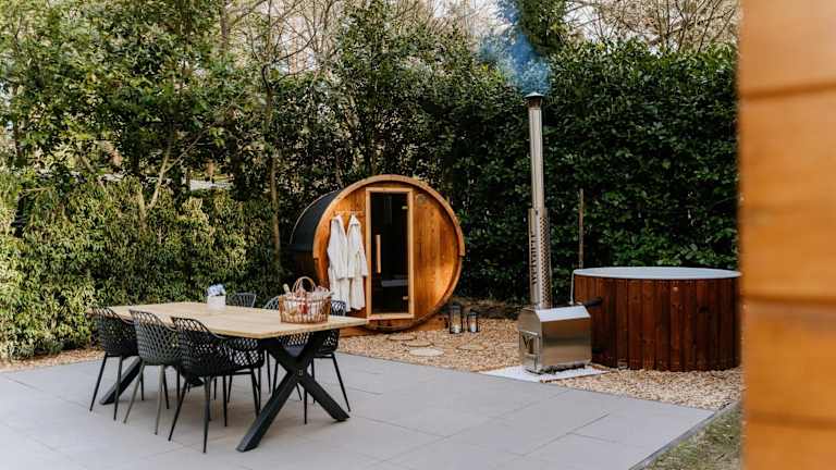 Das Romantisch Wellness Boshuisje met Sauna & Hottub bietet eine Unterkunft mit Garten und Terrasse sowie Spa- und Wellnesseinrichtungen, darunter eine Sauna und ein Whirlpool. Die Unterkunft ist klimatisiert und bietet allen Komfort.