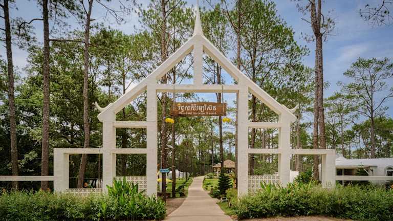 Das Romdoul Kirirom Resort liegt in Thmey Village, im Bezirk Phnom Srouch, Kampong Speu, rund 96 Kilometer vom Flughafen Phnom Penh entfernt. Die Umgebung bietet eine ruhige Gartenlandschaft und Zugang zu einem Außenpool.