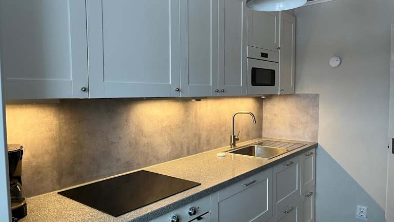 Die Ferienwohnung verfügt über ein Schlafzimmer und ein Wohnzimmer. Es ist ausgestattet mit einem Flachbild-TV und einer voll ausgestatteten Küche.