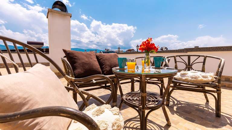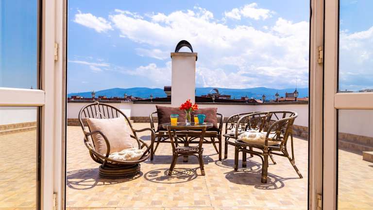 Die Unterkunft Roof top terrace maisonette bietet eine Ferienwohnung mit Stadtblick sowie Möglichkeiten zur Entspannung auf einer Terrasse und einem Balkon. Kostenloses WLAN ist vorhanden.