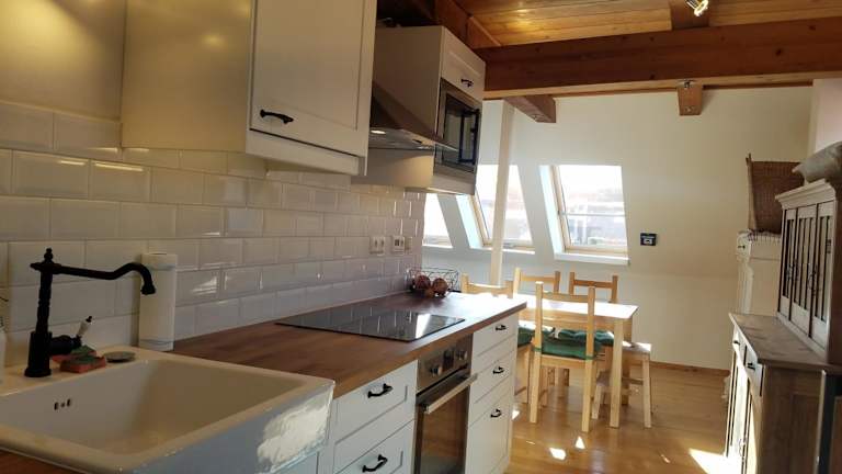 In der gut ausgestatteten Küche des Rooftop Chalet können Sie Ihre eigenen Mahlzeiten zubereiten. Alternativ finden Sie in der Altstadt von Stralsund eine große Auswahl an Restaurants und Cafés, in denen Sie lokale Spezialitäten und internationale Gerichte genießen können.