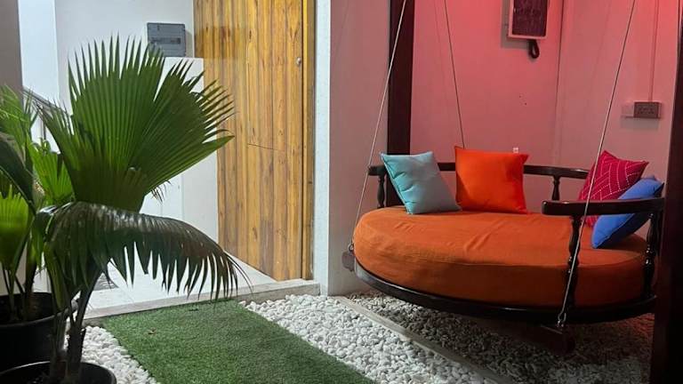 Die Unterkunft Rooftop Inn befindet sich auf der Insel Filitheyo, umgeben von einem Garten und einer Terrasse.