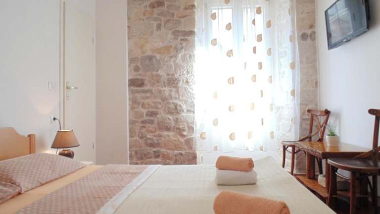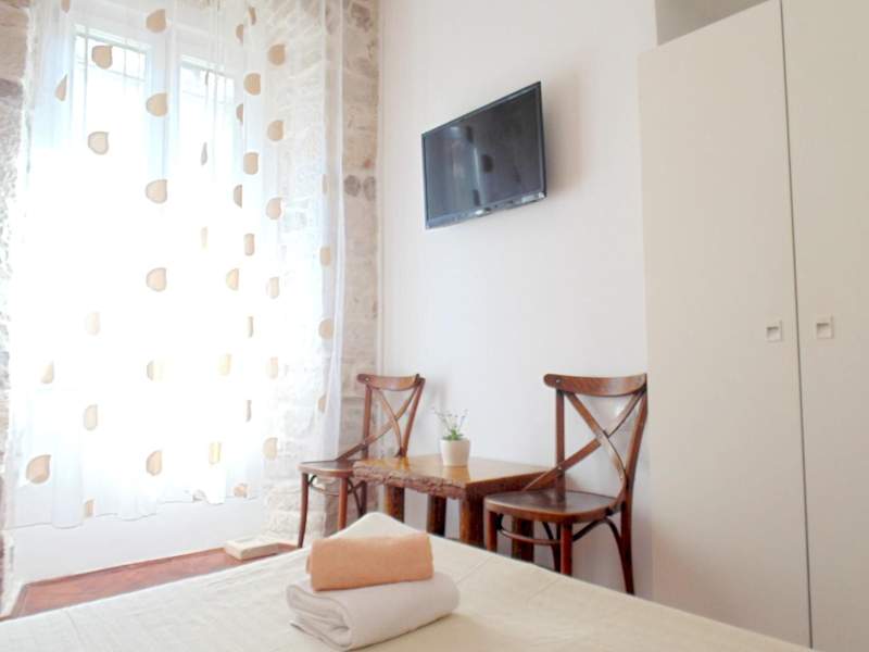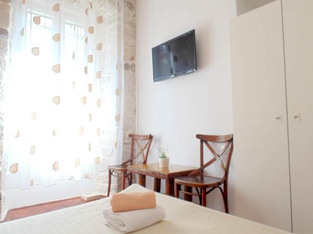 Erleben Sie einen einzigartigen Aufenthalt im Herzen von Split in den Rooms and Apartments Djanovic. Die Unterkunft befindet sich direkt im UNESCO-geschützten Diokletianpalast und bietet kostenloses WLAN sowie einen Blick auf die grüne Oase im Palast. Die Zimmer sind mit modernen Annehmlichkeiten wie einem Flachbild-TV ausgestattet, während die Apartments über eine komplett ausgestattete Küchenzeile verfügen. Genießen Sie die traditionelle mediterrane Küche in der Taverne vor Ort und erkunden Sie die umliegenden Geschäfte, Bars und Restaurants. Die wichtigsten Sehenswürdigkeiten, Denkmäler und Museen befinden sich nur wenige Schritte entfernt. Entspannen Sie am beliebten Sandstrand Bačvice oder erkunden Sie den Hügel von Marjan für Outdoor-Aktivitäten. Die Bus- und Bahnstation sowie der Fährhafen sind bequem zu Fuß erreichbar. Der Flughafen von Split ist 25 km entfernt.
