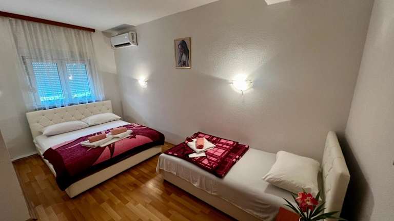 Entspannen Sie im Rooms Ivana in Međugorje, nur 2,2 km von der Kirche St. Jacobs entfernt. Das Hotel bietet komfortable Zimmer mit kostenfreiem WLAN und Privatparkplätzen. Genießen Sie den Garten und die Terrasse zum Entspannen. Der Hügel Krizevac und der Erscheinungsberg sind nur wenige Kilometer entfernt. Der Flughafen Mostar ist ebenfalls gut erreichbar.