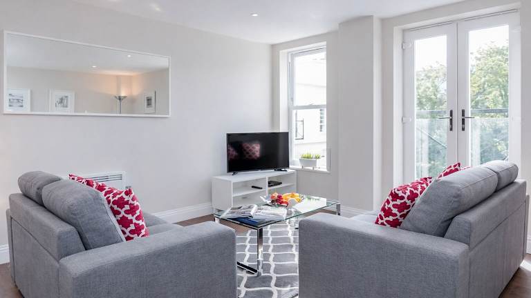 Die Roomspace Serviced Apartments - Trinity House bieten geräumige und komfortable Unterkünfte, die ideal sind für längere Aufenthalte oder für Reisende, die sich wie zu Hause fühlen möchten. Jedes Apartment verfügt über einen gemütlichen Sitzbereich, in dem Sie sich entspannen können, sowie einen Flachbild-TV für Unterhaltung. Die Küche ist gut ausgestattet mit einem Kühlschrank, einem Geschirrspüler, einem Backofen, einer Mikrowelle, einem Kochfeld, einem Toaster und einem Wasserkocher. Das private Badezimmer ist mit einer Badewanne oder einer Dusche und kostenlosen Pflegeprodukten ausgestattet.