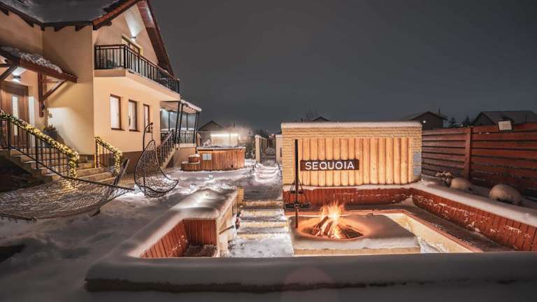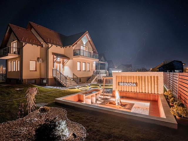 Die Roots Villa Sequoia in Braşov ist eine luxuriöse Unterkunft, die mit einem wunderschönen Garten, einer Gemeinschaftslounge und einer Terrasse beeindruckt. Das kostenfreie WLAN und der atemberaubende Stadtblick sorgen für einen unvergesslichen Aufenthalt. Die Villa bietet großzügige Räumlichkeiten mit insgesamt 4 Schlafzimmern, einem gemütlichen Wohnzimmer und einer voll ausgestatteten Küche. Darüber hinaus stehen den Gästen 7 Badezimmer zur Verfügung, die mit hochwertigen Annehmlichkeiten wie einem Whirlpool ausgestattet sind. Die Sauna lädt zum Entspannen ein und für Kinder gibt es einen Spielplatz. In der Nähe befinden sich das Erlebnisbad Aquatic Paradise und der Rathausplatz. Der internationale Flughafen Hermannstadt ist ebenfalls gut erreichbar.