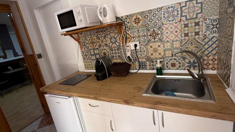 Die Ferienwohnung umfasst ein Schlafzimmer, ein Wohnzimmer, eine voll ausgestattete Küche mit Kühlschrank und Kaffeemaschine sowie ein Badezimmer mit Dusche und kostenlosen Pflegeprodukten. Handtücher und Bettwäsche werden bereitgestellt und die Unterkunft verfügt über Klimaanlage.