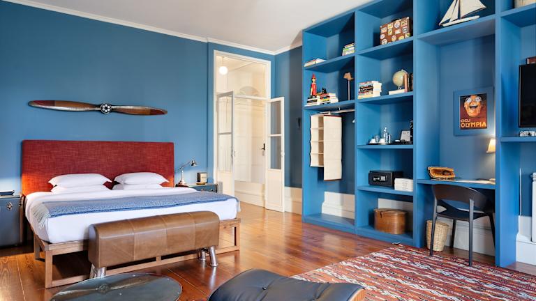 Boutique B&B in Porto, geräumiges Zimmer mit Designerausstattung. Balkon auf ruhigen Innenhof. Zugang zu überwachtem Parkhaus.