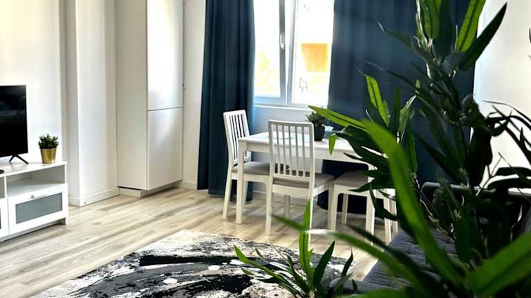 Das Apartment umfasst ein Schlafzimmer, ein Wohnzimmer und eine voll ausgestattete Küche mit Kühlschrank und Kaffeemaschine. Es verfügt über ein Badezimmer mit Badewanne und kostenfreien Pflegeprodukten. Handtücher und Bettwäsche sind in der Unterkunft verfügbar.