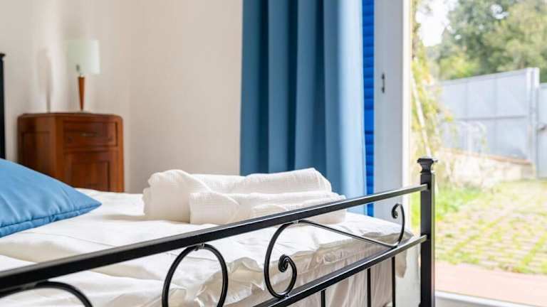 Die Ferienwohnung bietet eine Terrasse, zwei Schlafzimmer, ein Wohnzimmer sowie eine gut ausgestattete Küche, die mit einem Kühlschrank und einem Geschirrspüler ausgestattet ist. Handtücher und Bettwäsche werden bereitgestellt.
