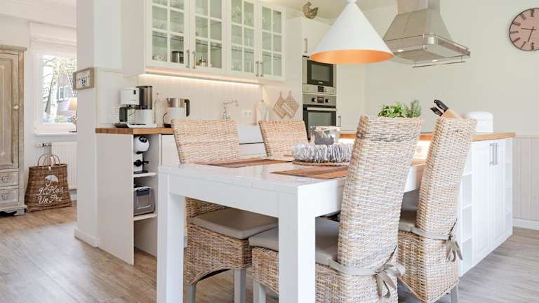 Die Unterkunft verfügt über eine voll ausgestattete Küche, die mit Kühlschrank, Geschirrspüler, Waschmaschine, Ofen und Herdplatte ausgestattet ist.