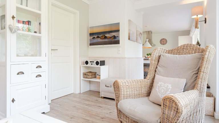 Die Ferienwohnung umfasst ein Schlafzimmer und bietet einen TV sowie eine komplett eingerichtete Küche.