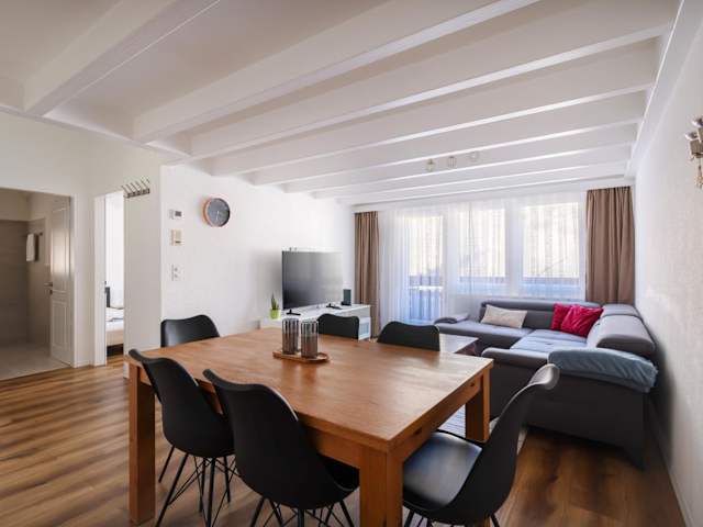 Die Ferienwohnung ist mit 2 Schlafzimmern ausgestattet, einer Küche, die einen Kühlschrank und einen Geschirrspüler umfasst, einem Flachbild-TV sowie einem Sitzbereich. Des Weiteren verfügt die Unterkunft über 2 Badezimmer, die mit einer Dusche ausgestattet sind. Handtücher und Bettwäsche sind verfügbar.