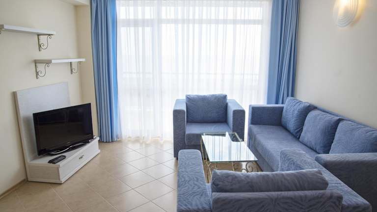 Das elegante Royal Bay Aparthotel bietet einen direkten Zugang zu einem Strand am Schwarzen Meer und umfasst zwei Gebäude mit hellen, klimatisierten Unterkünften. Gästen stehen kostenfreies WLAN, ein saisonaler Außenpool, sowie ein Kinderbecken mit eigenem Animationsprogramm zur Verfügung. Das Hotel ist eine Nichtraucherunterkunft und legt Wert auf hygienische Standards.