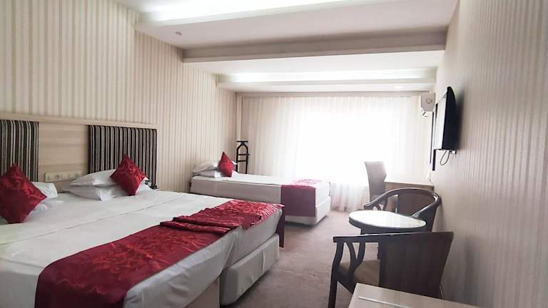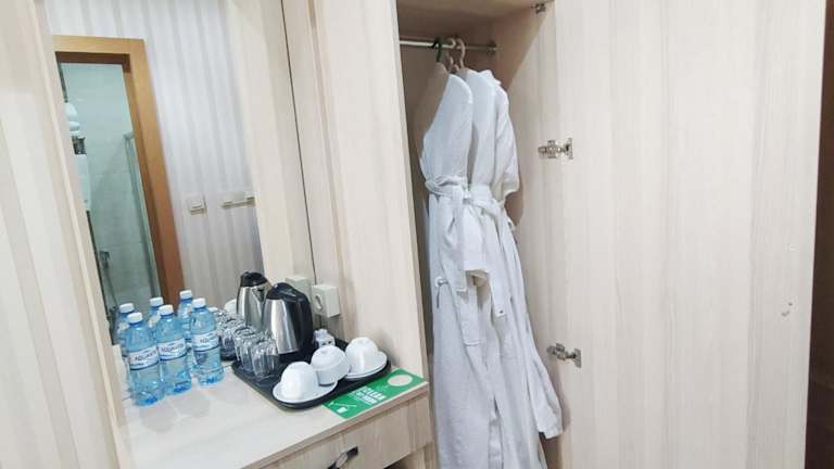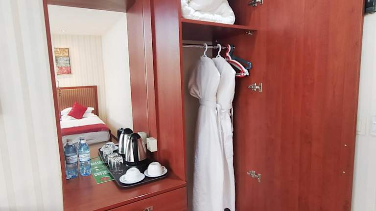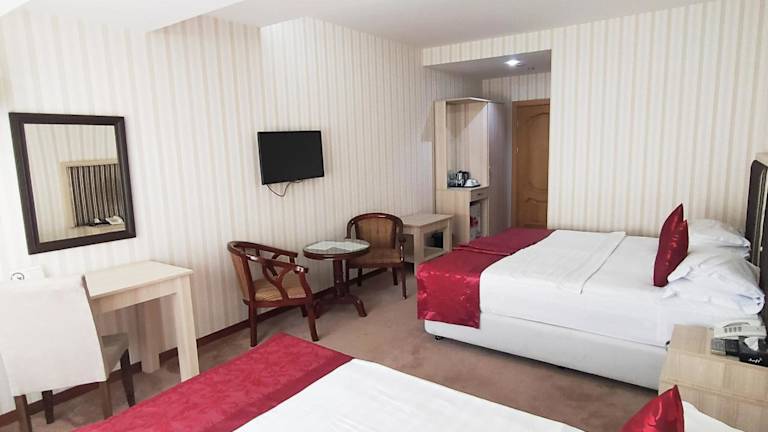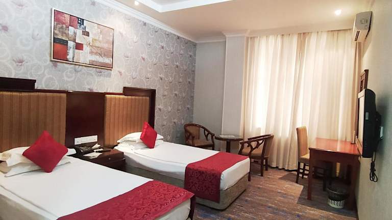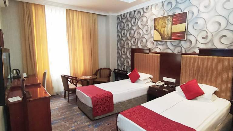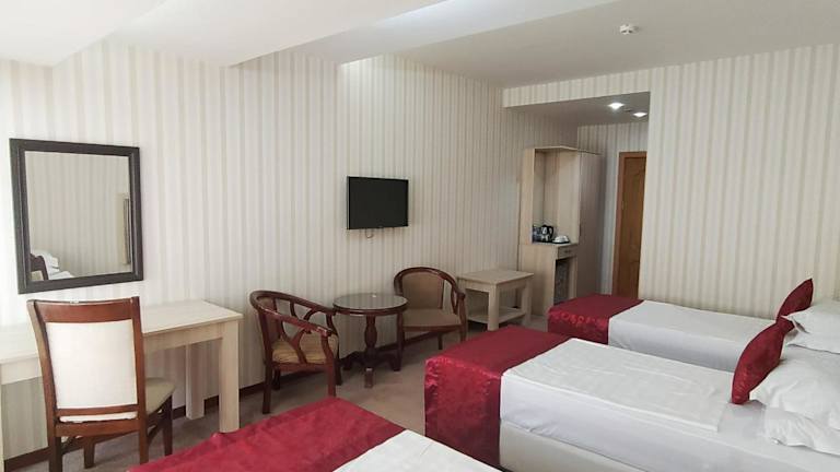 Das Royal Hotel in Baku bietet seinen Gästen einen angenehmen Aufenthalt mit kostenfreiem WLAN, einem Billardtisch und einem leckeren Frühstücksbuffet. Die Zimmer sind klassisch und gemütlich eingerichtet und verfügen über Annehmlichkeiten wie einen Flachbild-TV und eine Minibar. Im Restaurant des Hotels können Sie europäische und russische Spezialitäten genießen, und an der Bar oder beim Tischtennis können Sie den Abend ausklingen lassen. Die Altstadt und der Hauptbahnhof von Baku sind nur eine kurze Fahrt entfernt, und Sie können Ihr Auto kostenlos am Hotel parken.