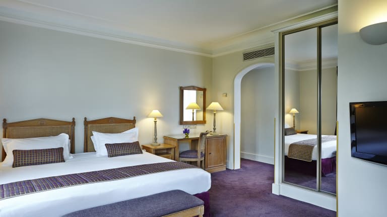 Das Royal Hotel Paris erstreckt sich über 6 Etagen und bietet insgesamt 58 Unterbringungsmöglichkeiten, bestehend aus 7 Suiten, 12 Einzel- und 39 Doppelzimmern. Die Rezeption ist 24 Stunden besetzt, und es stehen diverse Einrichtungen wie eine Gepäckaufbewahrung, ein Safe und eine Wechselstube zur Verfügung. WLAN kann kostenfrei im öffentlichen Bereich genutzt werden. Für die Gäste werden Dienstleistungen wie Zimmerservice, Wäscheservice und ein Babysitterservice angeboten. Ein Business-Center bietet Unterstützung für geschäftliche Angelegenheiten.