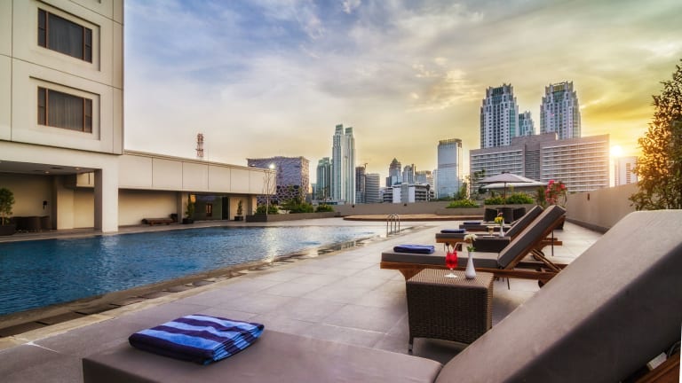 Das Hotel befindet sich an der Jalan Kuningan Persada in Jakarta. Die Innenstadt ist in 10 Fahrminuten erreichbar. Sehenswürdigkeiten wie das Gelora Bung Karno Stadion sind 6,1 km entfernt, während das Nationaldenkmal in einer Entfernung von 20 Autominuten liegt. Der Flughafen Soekarno Hatta ist in etwa 60 Minuten mit dem Auto zu erreichen.