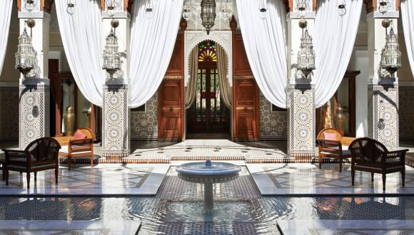 Das Royal Mansour Marrakech ist ein exklusives Hotel in Marrakesch, das mit seinem Innen- und Außenpool, den 4 Restaurants und dem luxuriösen Spa- und Wellnesscenter einen unvergesslichen Aufenthalt verspricht. Die Unterkunft überzeugt zudem mit ihrer zentralen Lage, nur wenige Gehminuten vom berühmten Marktplatz Djemaa el Fna entfernt.