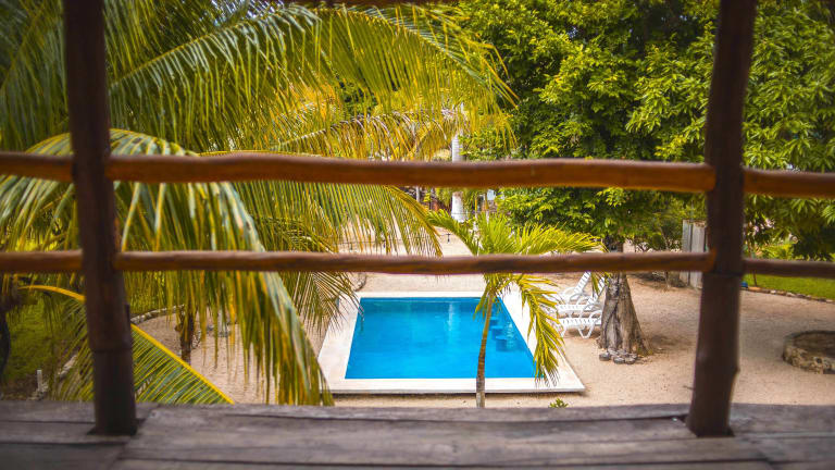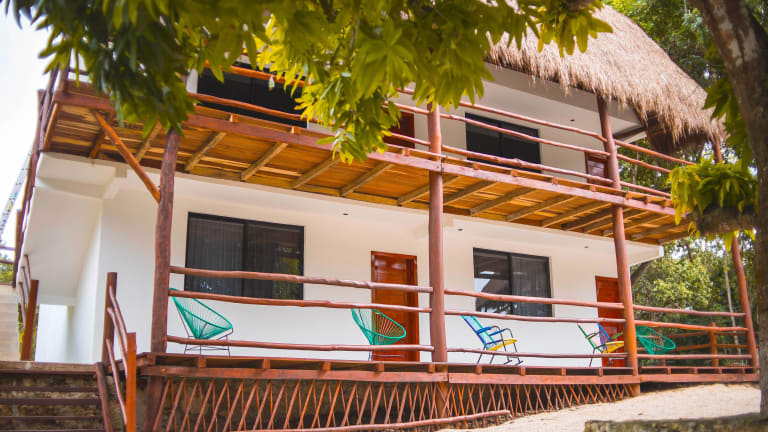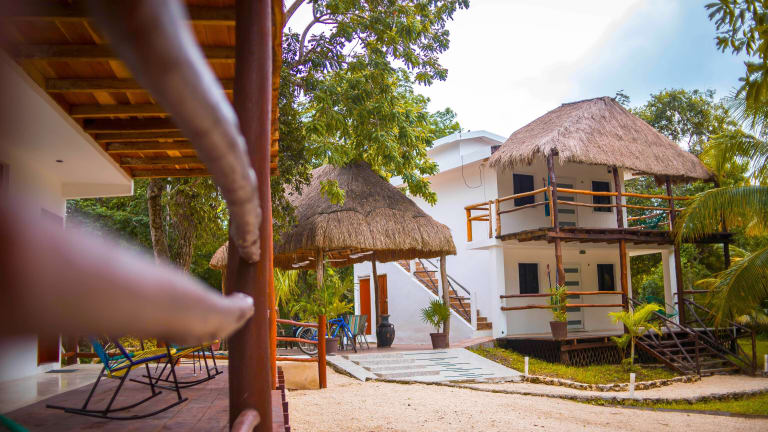 Im Royal Palm Bacalar Cabañas & Lagoon Club erwartet Sie ein erholsamer Aufenthalt inmitten der Natur. Die Unterkunft bietet komfortable Zimmer mit eigenem Balkon und einer Küchenzeile. Genießen Sie die idyllische Lage direkt am Wasser und erkunden Sie die malerische Umgebung von Bacalar.