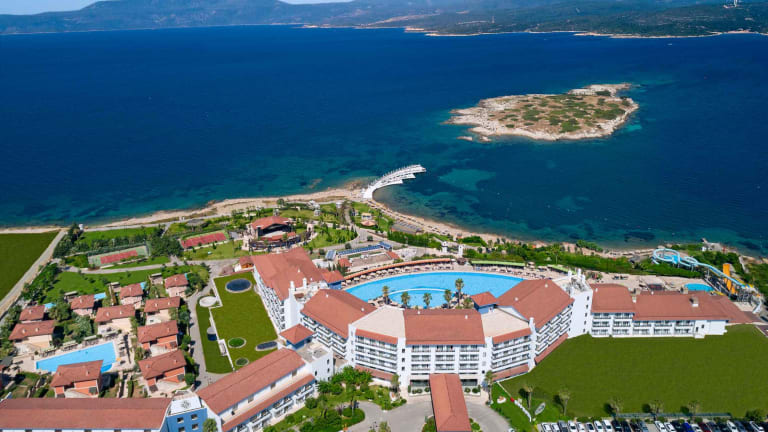Nur etwa 30km südwestlich von Izmir finden Sie die malerische Hafenstadt Sigacik an der Küste zur Ägäis, deren traditioneller Nachtmarkt weit über die Grenzen der Türkei hinaus bekannt sind. Das mit fünf türkischen Sternen ausgezeichnete Luxushotel Euphoria Royal Teos Thermal Resort Clinic & Spa ist in perfekter Lage auf einer kleinen Halbinsel angesiedelt, von der Sie fußläufig den Hafen bei einem entspannten Spaziergang erreichen. Es erwartet Sie ein Strandhotel mit exzellentem Service, einer großzügigen Anlage mit einem prachtvollen Garten und mehreren Pools sowie einem herausragenden Strand in der hoteleigenen Badebucht. Hier dominiert der ins Ägäische Meer ragende Badesteg, der in Form einer Sichel einen weiten Bogen durch die Bucht zieht, was Ihnen Sonnenbäder mitten im Meer ermöglicht. Zu Ihrer Unterbringung stehen Ihnen einladende Zimmer mit üppiger Ausstattung in unterschiedlichen Lagen zur Auswahl, die bis zu 41m² geräumig sind. Wie das gesamte, architektonisch modern gehaltene Hotel sind auch die Zimmer im zeitgemäßen türkischen Stil eingerichtet, der an die prunkvollen Palastbauten der früheren osmanischen Sultane erinnert. Besonders die eleganten Bäder mit ihrer geschmackvollen Gestaltung und deren Sauberkeit finden in den Gästekommentaren häufig lobende Erwähnung.