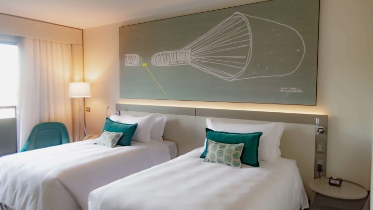 Die Zimmer sind mit individuelle Steuerung für Klimaanlage und Heizung ausgestattet und verfügen in der Regel über einen Balkon. Zur Standardausstattung gehören Teppichboden, Doppel- oder Kingsize-Betten, Safe, Minibar, Schreibtisch und Minikühlschrank. Ein TV-Gerät mit Satelliten-/Kabelempfang, eine Stereoanlage und kostenfreies WLAN sind ebenfalls vorhanden. Die Badezimmer sind mit Dusche, Badewanne, Haartrockner und Bademänteln ausgestattet. Es stehen auch barrierefreie Zimmer zur Verfügung.