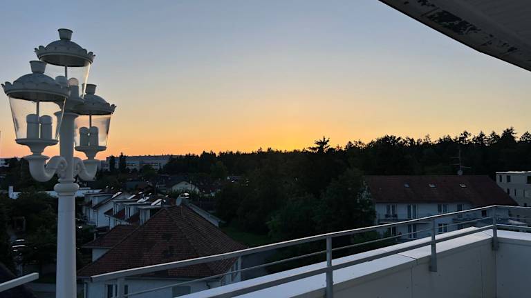 Die Ferienwohnung über den Dächern von Bregenz bietet Stadtblick und eine private Terrasse für Erholung und Entspannung.