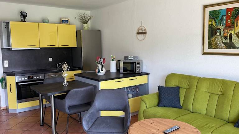Die Ferienwohnung verfügt über zwei Schlafzimmer und ist mit kostenlosem WLAN ausgestattet. Der Wohnbereich beinhaltet einen Flachbild-TV mit Satellitenempfang. Eine Küchenzeile mit Kühlschrank und Geschirrspüler sorgt für die Selbstverpflegung der Gäste. Handtücher und Bettwäsche werden zur Verfügung gestellt.
