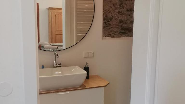 Die Ferienwohnung umfasst ein Schlafzimmer, eine Küche, die mit einem Kühlschrank und einem Ofen ausgestattet ist, sowie ein Badezimmer mit Dusche und kostenlosen Pflegeprodukten. Handtücher und Bettwäsche werden bereitgestellt.