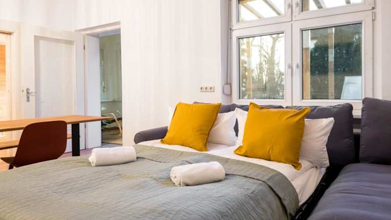 Die Unterkunft befindet sich in Berlin, 16 km von der East Side Gallery entfernt. Sie ist fußläufig zum Wasser gelegen und bietet eine gute Verkehrsanbindung zum Flughafen, der in etwa 25 Minuten erreichbar ist. Weitere Sehenswürdigkeiten sind der Gendarmenmarkt und Checkpoint Charlie, die jeweils 19 km und 20 km entfernt sind. Der U-Bahnhof Alexanderplatz ist 18 km von der Lage entfernt.
