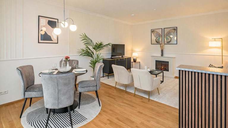 Die Ferienwohnung umfasst ein Schlafzimmer sowie eine Küche mit Kühlschrank und Geschirrspüler. Zu den Annehmlichkeiten zählen ein Flachbild-TV, ein Sitzbereich und ein Badezimmer mit Dusche. Handtücher und Bettwäsche werden bereitgestellt. Alle Zimmer sind schallisoliert und die Unterkunft ist Nichtraucher. WLAN ist in allen Bereichen verfügbar.