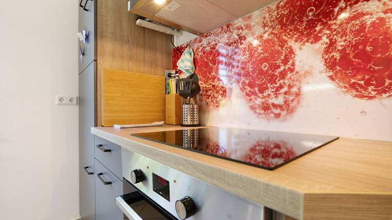 Die Ferienwohnung verfügt über ein Schlafzimmer, eine Küche, die mit einem Kühlschrank und einem Geschirrspüler ausgestattet ist, sowie ein Badezimmer mit Dusche, kostenlosen Pflegeprodukten und einer Waschmaschine. Handtücher und Bettwäsche werden bereitgestellt.