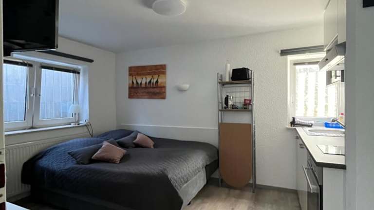 Die Ferienwohnung verfügt über ein Schlafzimmer, einen Flachbild-TV mit Satellitenkanälen und eine gut ausgestattete Küche mit Kühlschrank und Ofen. Ein Badezimmer mit Dusche sowie Handtücher und Bettwäsche sind ebenfalls vorhanden. Die Unterkunft bietet zusätzlich WLAN, Nichtraucherzimmer und einen Parkplatz.