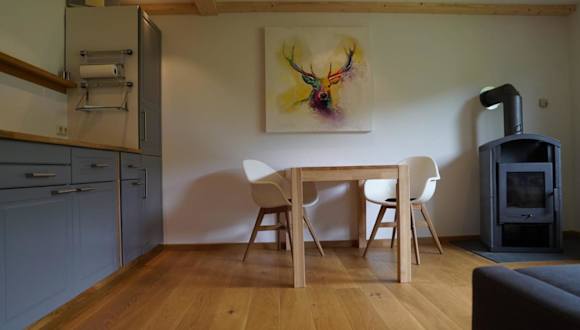 Das Ferienhaus verfügt über ein Schlafzimmer, ein Wohnzimmer mit einem Flachbild-TV und einem gemütlichen Kamin sowie eine voll ausgestattete Küche mit einem Kühlschrank und einer Mikrowelle. Das Badezimmer ist mit einer Dusche ausgestattet. Handtücher und Bettwäsche werden gestellt, so dass Sie sich um nichts kümmern müssen. Von der Terrasse aus können Sie den herrlichen Blick auf die Berge genießen.