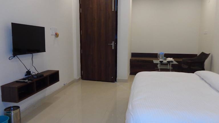 Das Rukmani Inn in Vrindāvan, Uttar Pradesh, ist eine ideale Unterkunft für Reisende, die die Region erkunden möchten. Mit einer Terrasse, einer 24-Stunden-Rezeption und kostenfreiem WLAN bietet das Hotel alle Annehmlichkeiten, die Sie für einen angenehmen Aufenthalt benötigen. Die Zimmer sind komfortabel eingerichtet und verfügen über eine Klimaanlage und einen Flachbild-TV. Einige Zimmer bieten zudem einen Balkon. Der Flughafen Agra ist nur 66 km entfernt, was das Hotel auch für internationale Gäste leicht erreichbar macht.