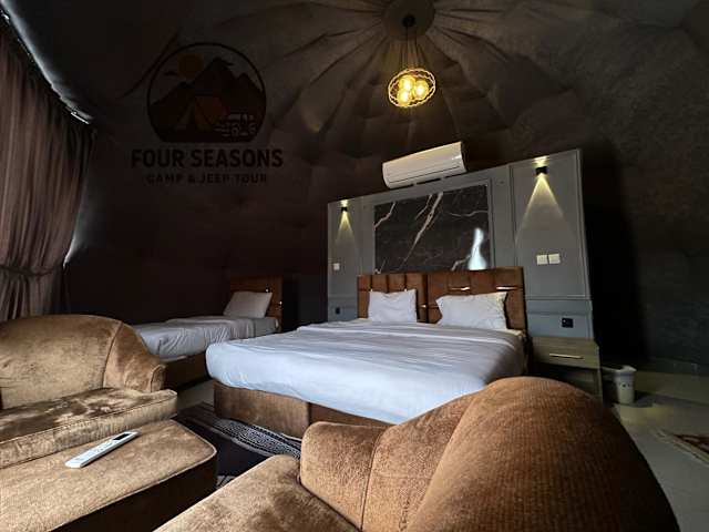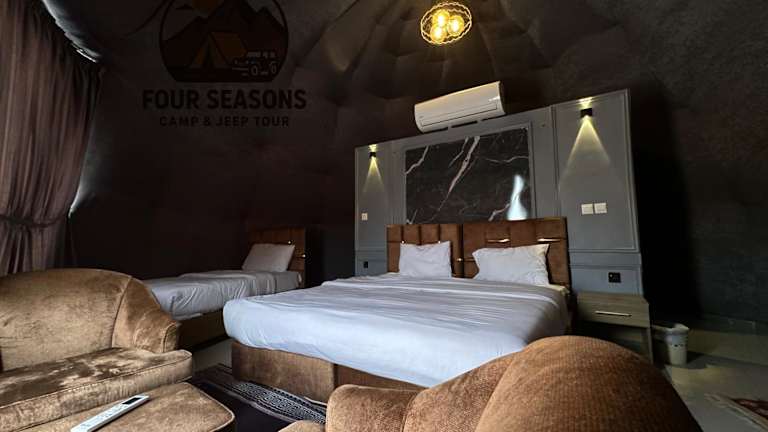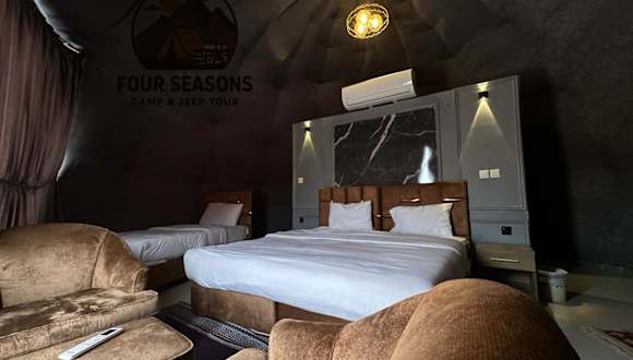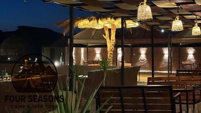 Das Rum Four Seasons luxury Camp & Jeep Tours bietet Bergblick, ein Restaurant, eine Gemeinschaftslounge sowie einen Garten und eine Terrasse. Ein Whirlpool steht zur Verfügung und ein Kasino befindet sich vor Ort. Es handelt sich um eine Unterkunft, die aufgrund ihrer Angebote als luxuriös gilt.