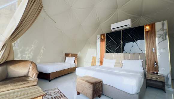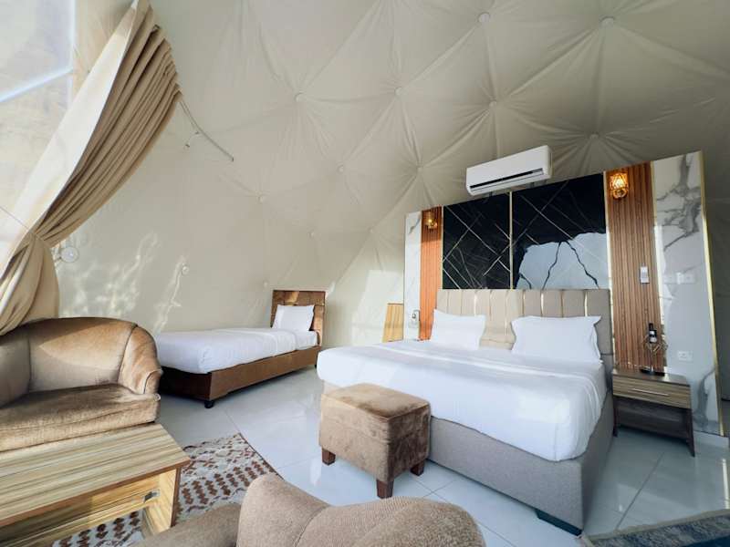Die Unterkunft Rum Kingdom Camp befindet sich in Wadi Rum, einer Region, die für ihre beeindruckenden Wüstenlandschaften bekannt ist. Der nächstgelegene Flughafen, der Flughafen Aqaba, liegt 68 km entfernt und es wird ein kostenpflichtiger Flughafentransfer angeboten.