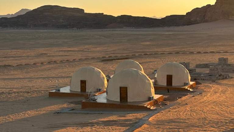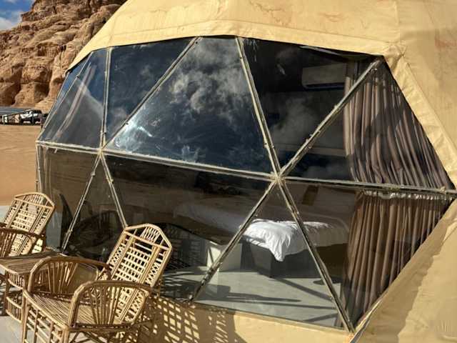 Das Rum Adventure Camp befindet sich in der beeindruckenden Wüstenlandschaft von Wadi Rum und bietet einen atemberaubenden Blick auf die umliegenden Berge. Die Lage ermöglicht es den Gästen, die Schönheit der Natur zu genießen und gleichzeitig eine Vielzahl von Outdoor-Aktivitäten wie Wandern, Klettern und Kamelreiten zu erleben. Der internationale Flughafen King Hussein ist ebenfalls gut erreichbar und bietet eine bequeme Anbindung an das Camp.