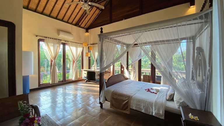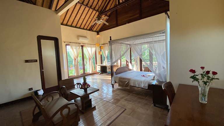 Das Rumah Dadong in Ubud liegt inmitten einer beeindruckenden Landschaft von Reisfeldern. In der Nähe befinden sich das Blanco Renaissance Museum, der Palast von Ubud und der Markt von Ubud. Der internationale Flughafen Denpasar ist etwa 1,5 Fahrstunden entfernt.
