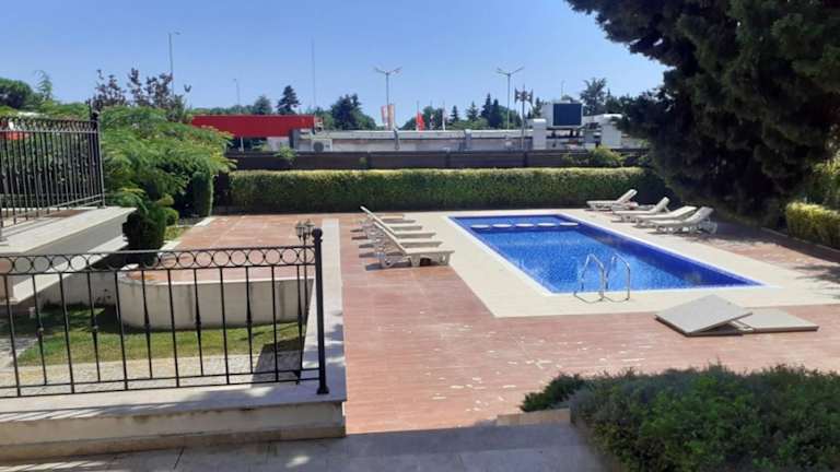 Rumi place ist eine Ferienwohnung, die über einen Balkon mit Gartenblick sowie einen saisonalen Außenpool und eine Terrasse verfügt. Sie bietet zudem einen eigenen Pool und einen Garten sowie einen kostenlosen Privatparkplatz.